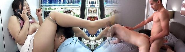 Cock-Thirsty Asian Hottie Gets Her Pussy Juiced up by the Refrigerator at the Convenience Store's Corporate Office