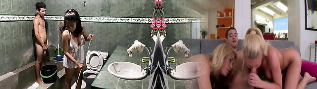 Japanese Beauties Take Turns Sucking Dick In Shared Shower Stall