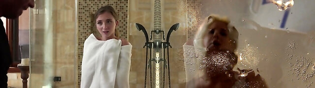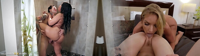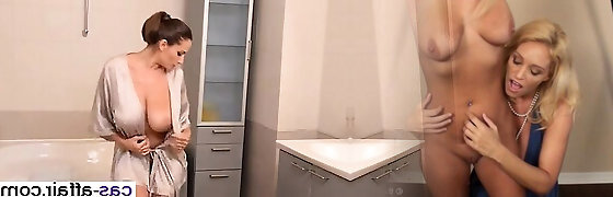 Horny Blonde Fucks Busty Brunette In Steamy Bathroom Porn Scene