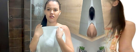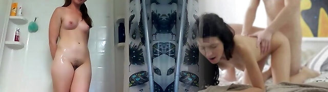 Busty Amateurs Fucking on Shower Cam - Masturbating Couple in Bathroom Sex!