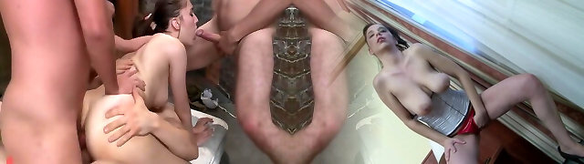 Wild Group Sex: 9 Men Fucking 2 Horny Females!