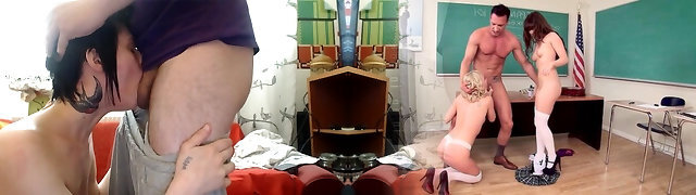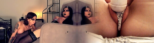 Horny Gothic Girl Sucks Dick until Her Friend Cums on Her Face