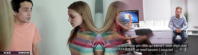 Horny Step-Son Gives Mommy's Boy His First Blowjob!