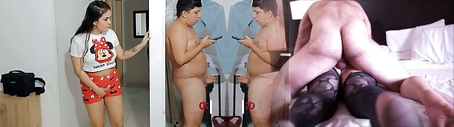 Unaware Minnie Lover with Naked Stepbro Reflection
