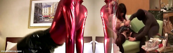Latex Dommes Play in Red Room