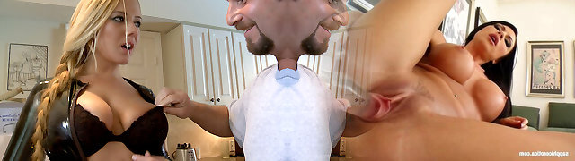 Pussy-Slapping Fun with a Sexy Latex Dude and Horny Blonde Chick!
