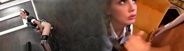 Euro Babe Maid Gets Cocktastic Bukkake Surprise!