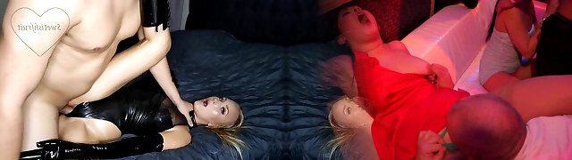 Latex Domme Controls Rubber Slave Orgy