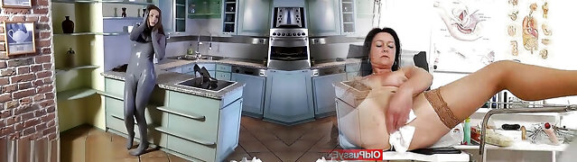 Fuck Yourself Thursday: A Big Tit Woman's Self-Indulgent Pleasure Session in Latex Pants in the Kitchen