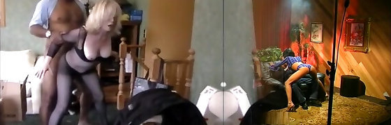 Hardcore interracial gangbang with nylon-loving Lauren.