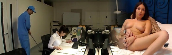 Japanese Babe Rides Cock at Work