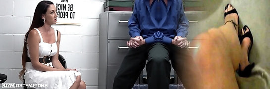 Shoplifting Brunette Babe Fucks Cocky Cop in Office Hardcore Blowjob Action!