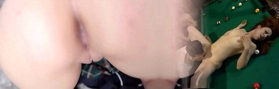 Horny Sex under the Table with the Schoolgirl: Fucking her Cum-filled Pussy