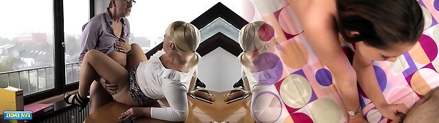Horny For Business - Two Secretaries Get Fucked By Their Boss In The Boardroom!