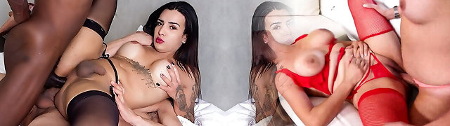 Horny Transshemale Treshome Fucks Girl's Hot Pussy!