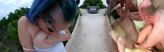 Horny Tattooed Babe Fucks Self on Bridge while Feeding Infant