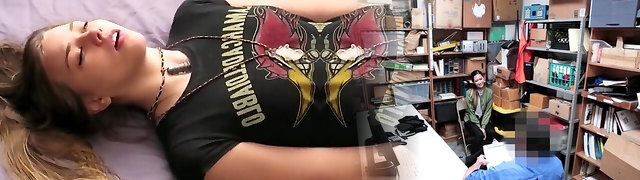 Young Busty Redhead Fucks Older Man While He Works