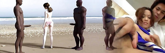 White Girl's Tight Pussy Fucked by Two Big Black Dicks on the Beach