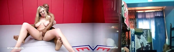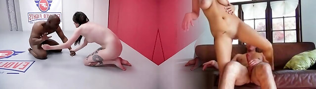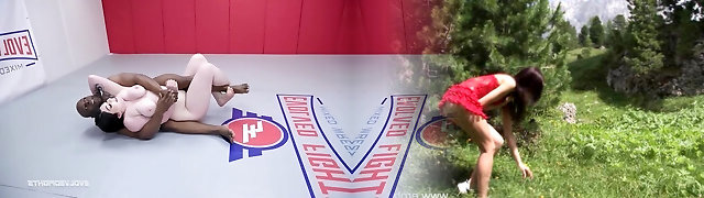 Wild Interracial Fetish Wrestling: Brunette Bombshell vs Big Black Dick!
