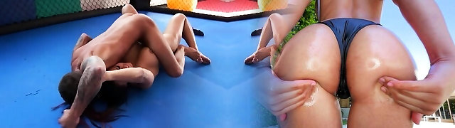 Hot Pussy Slippin' 'n' Slidin': Lesbian Wrestling Match-up Turns Sexual!