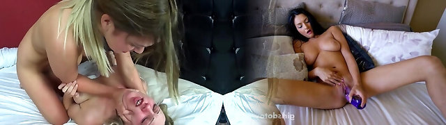 Horny Brit Blonde Fucks Her Bottom Bitch's Pussy Hard