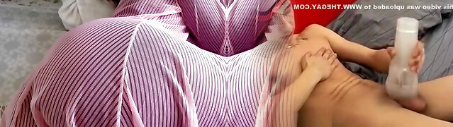 Busty Step-Mom Gets Fucked by Her Horny Stepdaughter's Dick in the Bathroom