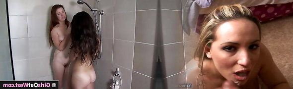 Horny Blonde Fucks Busty Brunette In Steamy Bathroom Porn Scene