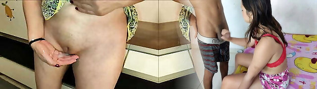 Horny Mom Fucks Her Stepson's Cock in the Bathroom