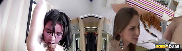 Busty Macy Meadows Gives Blowjobs in the Shower while Fucking Her Older Stepbrother!