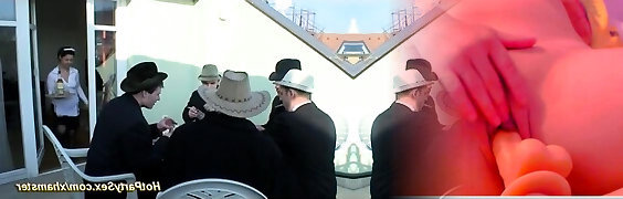 Busty Beauties Drink Wine while Fucking Horny Men in Bukkake Porn