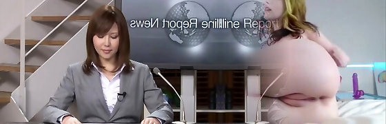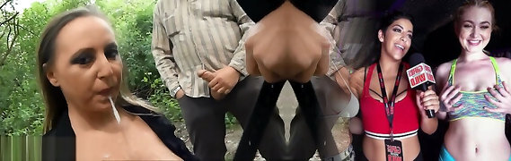 Fucking Horny Podium Announcer Gets Drenched in Cum during a Bukkake Session