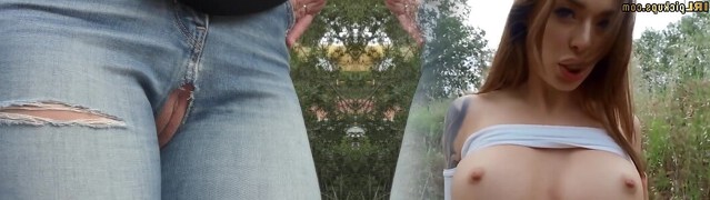 Torn Jeans and Bare Pussy: Cameltoe Outdoor Pleasure