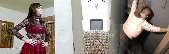 Crossdresser Fucked on Red Lingerie - Busty Horny Sex Porn