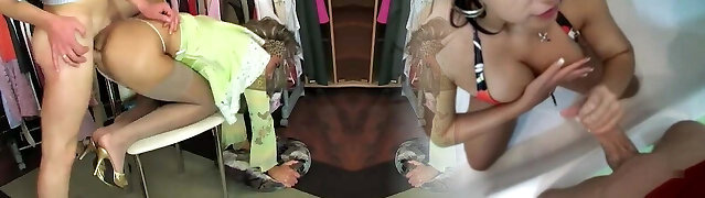 Shaved Crossdresser Fucked Hard While Busty Tits Watches