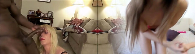 Black Lingerie Busty Tranny Fucks Hung Cock in Interracial Crossdresser Blowjob