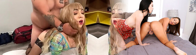 Busty Beauties Take On Crossdresser's Cock in Group Sex