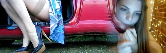 Schoolgirl surprise in the woods with stockings
