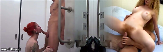 Redhead Licks Dick in Bathroom Scene