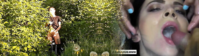 Busty Beauties Blowjob Bonanza: Two Hot Chicks Suck Off An Exhibitionist In Nature