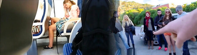 Horny Busty Chicks Touching Dick on a Bus: Flashing Porn on Public Transportation!