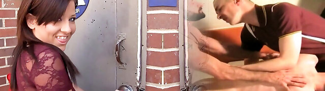 Brunettes Suck Cocks Through Wall Hole