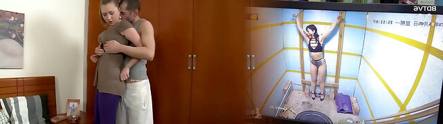 Ceiling-Mounted Dildo Milking Session