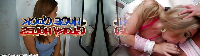 Gloryhole triple play with big-boobed beauties