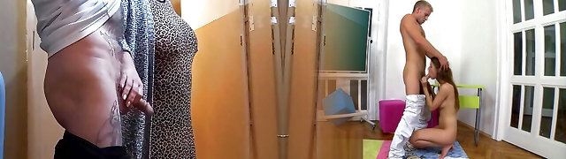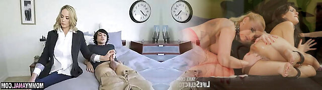Mature Blonde Strokes Teen’s Hard Dick