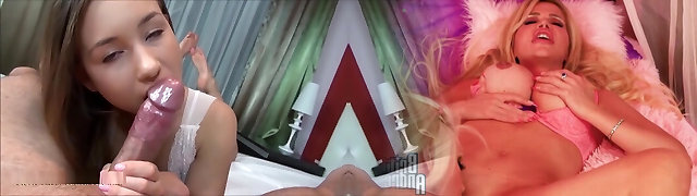 Hot Threesome Handjob Cumshot Action