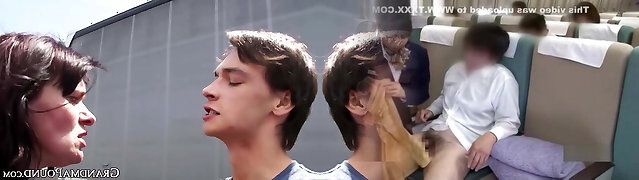Mile High Club Handjob: Busty Blonde Fucks Her Horny College Boyfriend in the Airplane Bathroom