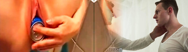 Crazy chick shoves can inside herself.