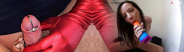 Red Glove Handjob with Ringed Shaft