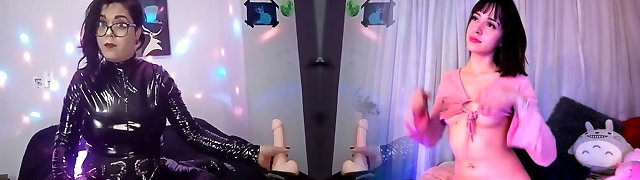 Black Mask Dominatrix Fucks Lesbian Latex Pussy
