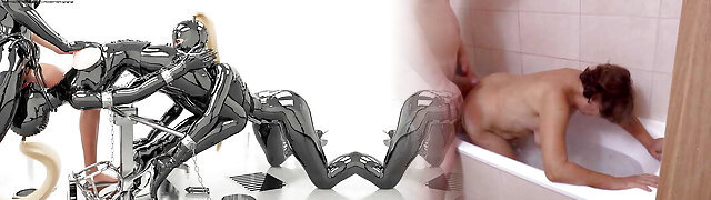 Black Latex Busty Babe Fucks Her Horny Submissive Cum Dumpster